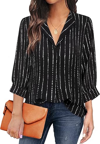 Women's Casual Chiffon V Neck 3/4 Sleeve Business Tops Loose Work Blouses
