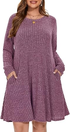 Women Sweater Dress Crew Neck Long Sleeve Casual Fall Winter Tunic Dress with Pockets