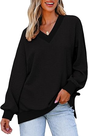 Womens Oversized Sweaters Long Sleeve Waffle Knit Tops V Neck Fall Outfits Clothes 2024