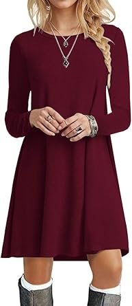 Women's Spring Long Sleeve T Shirt Dresses Casual Swing Dress