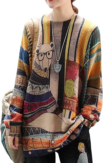 Women Christmas Sweater Graphic Printed Oversized Pullover Sweaters Casual Loose Knit Tops S01