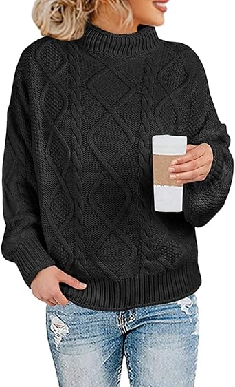 Womens Turtleneck Oversized Pullover Sweaters Cable Knit Batwing Long Sleeve Loose Fit Chunky Jumper Tops
