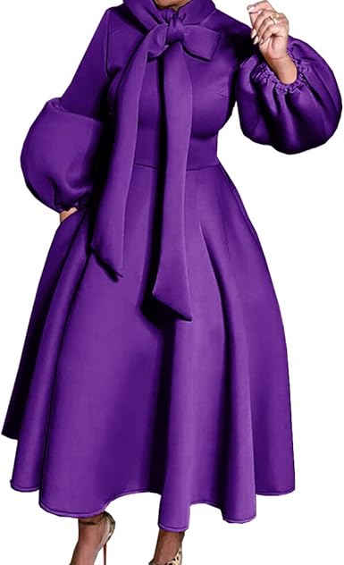 Women's Bowtie Neck Lantern Sleeve High Waist A-Line Long Dress