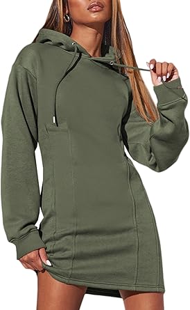 Womens Dresses Fall Winter 2024 Casual Long Sleeve Drawstring Pleated Hoodies Sweatshirt Pullover Tunic Mini Dress