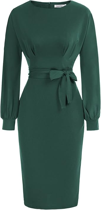 Women's Bodycon Pencil Dress Office Wear to Work Dresses with Pocket Belt