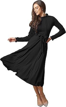 Women's 3/4 Sleeve A-line and Flare Midi Long Dress