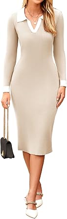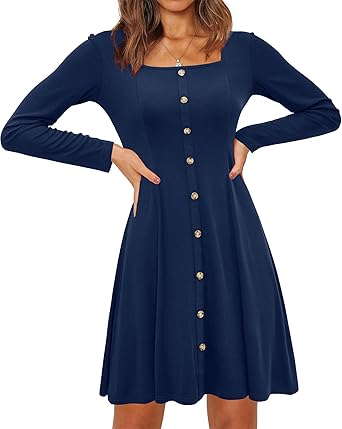Women 2024 Fall Dress Long Sleeve Holiday Outfits Square Neck Casual Winter Ribbed Knit Dresses Trendy