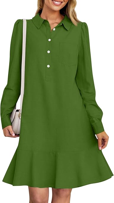 Dresses for Women 2024 Long Sleeve Button Down Shirt Dress Ruffle Flowy Casual Tunic Dresses